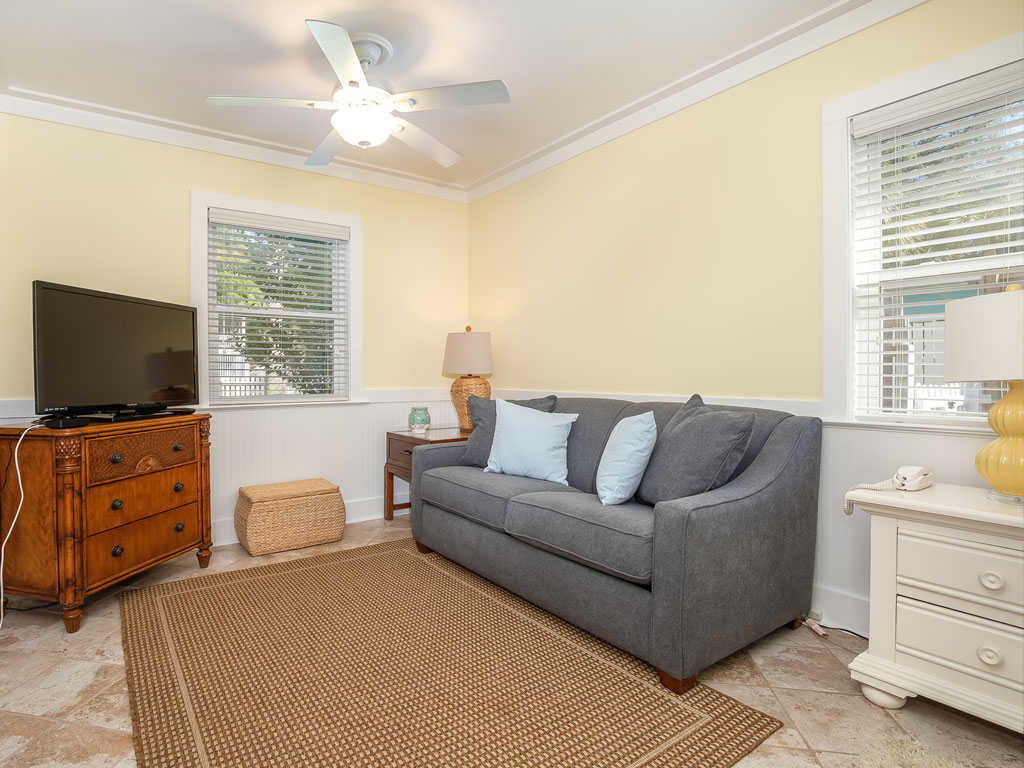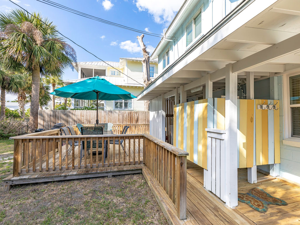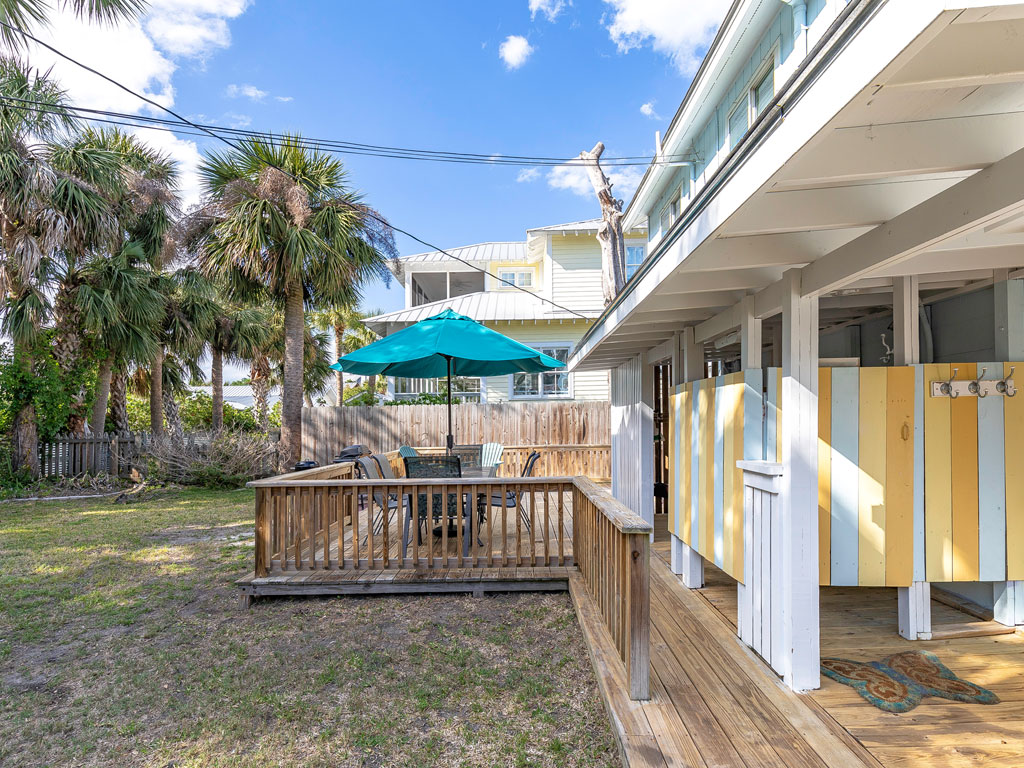 Sisters in the Sand is an updated 3 bedroom, 1 bath beach cottage and is a great choice for family vacations. Located just a short stroll from the beach, shops and restaurants, the Tybee Pier and Marine Science Center. You will enjoy the convenient South end location while still offering a unique cottage setting. Plus, the whole family can join you on your trip as this home is pet-friendly and will offer your furry companion a fully fenced backyard to enjoy. There is a furnished screened porch on the front of the home which offers space to relax and enjoy the beautiful island weather. Inside on the ground level, you will find a living area with a flat-screen TV, a dining area with a table seating 4, along with a nicely updated kitchen, full bath and washer/dryer. The first-floor bedroom has a Queen bed, double sleeper sofa, and a flat-screen TV. The large fenced backyard includes an enclosed outdoor shower, furnished deck, and a gas grill for cookouts. Upstairs, there are two bedrooms, one with a Queen bed which offers a TV and one with 2 Twins. There is also a small seating area with an additional TV. There is access to the relaxing, uncovered sun deck as well. Here you can enjoy the sunshine and the Tybee air! Relax and unwind and enjoy the cool breezes and warm sunshine. There is off-street parking for 2 vehicles. Sisters in the Sand is pet-friendly for 1 dog less than 25 lbs with an additional fee. Need more space for your upcoming vacation? Then consider also renting a neighboring home. Three Sisters is a 4 bedroom neighboring home that sleeps up to 12. When combined with Sisters in the Sand, that would be a total of 7 bedrooms, sleeping up to 19 guests. 2020 Minimum Nights: Any 4 nights June 12th – August 8th City of Tybee Island Short Term Vacation Rental (STVR) Permit # 061Z1